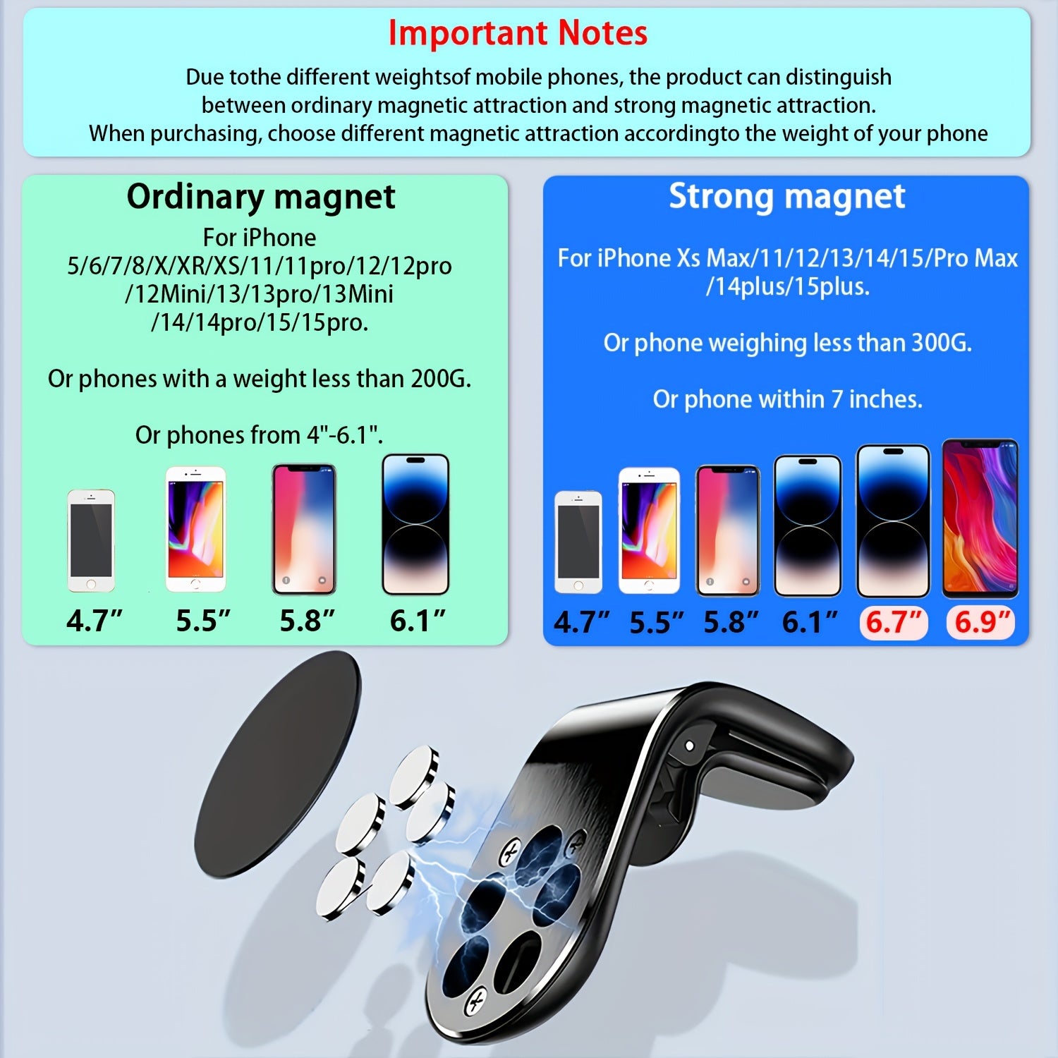 Keep your smartphone safe and accessible while driving with this innovative L-shaped magnetic mount. Compact design and strong magnetic attachment for maximum stability.