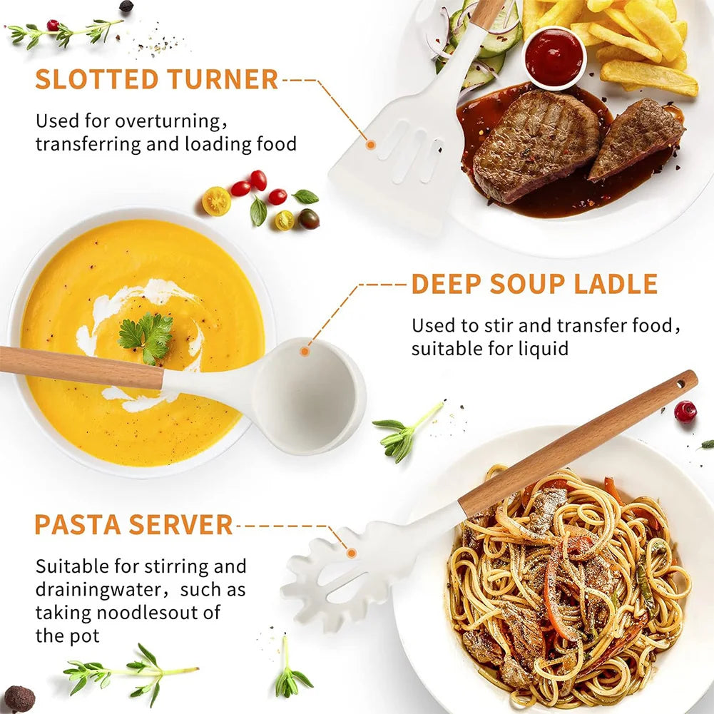 Espátulas, colheres, pincel, fouet, escumadeira e mais. Perfeito para cozinha completa, presente ou renovação utensílios.
