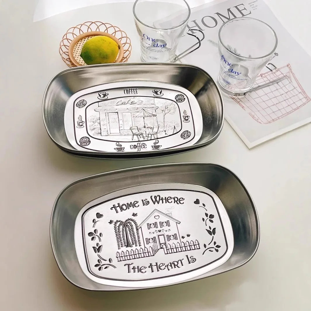 Tabuleiro Vintage Americano em Metal Inox