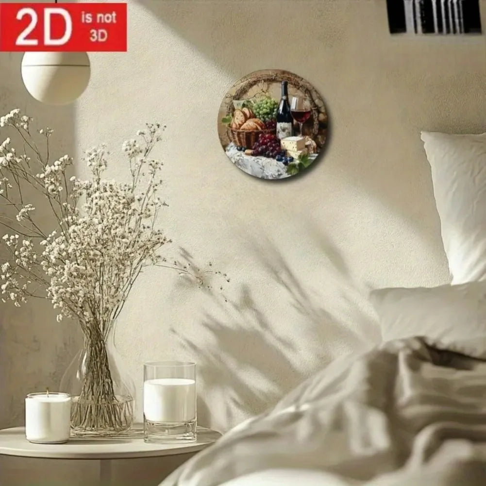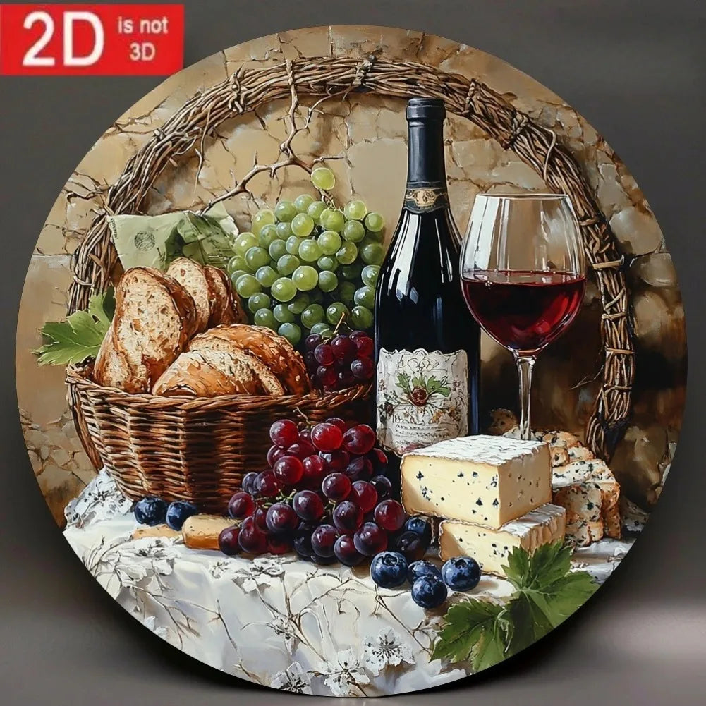 Adicione charme e sofisticação ao seu espaço com esta arte de parede em metal com tema de vinho. Design elegante perfeito para bar, cozinha, café ou qualquer ambiente que celebre a cultura vinícola.