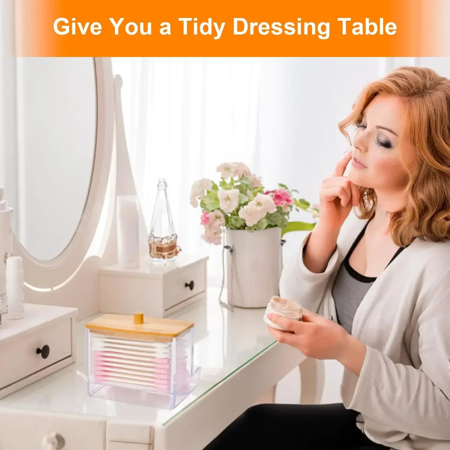Porta Cotonetes com Tampa de Bambu – Dispensador de Cotonetes | Recipiente Transparente em Plástico com Tampa de Bambu | Organizador para Casa de Banho