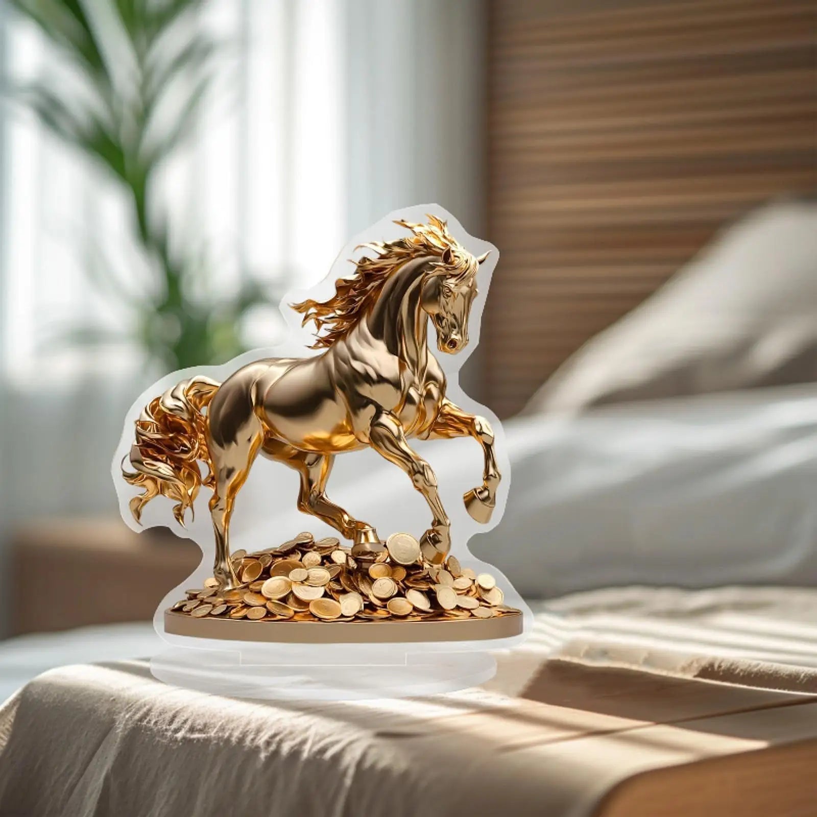 Estatueta Cavalo 2D Plana Acrílico Impermeável - Escultura Decorativa Mesa Escritório Lareira