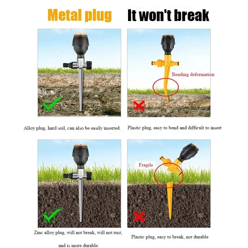 O Aspersor Automático 360º Premium é a solução profissional para quem quer um jardim impecável sem trabalho manual. Com rotação completa e cobertura ampla, garante rega uniforme e eficiente em toda a área.