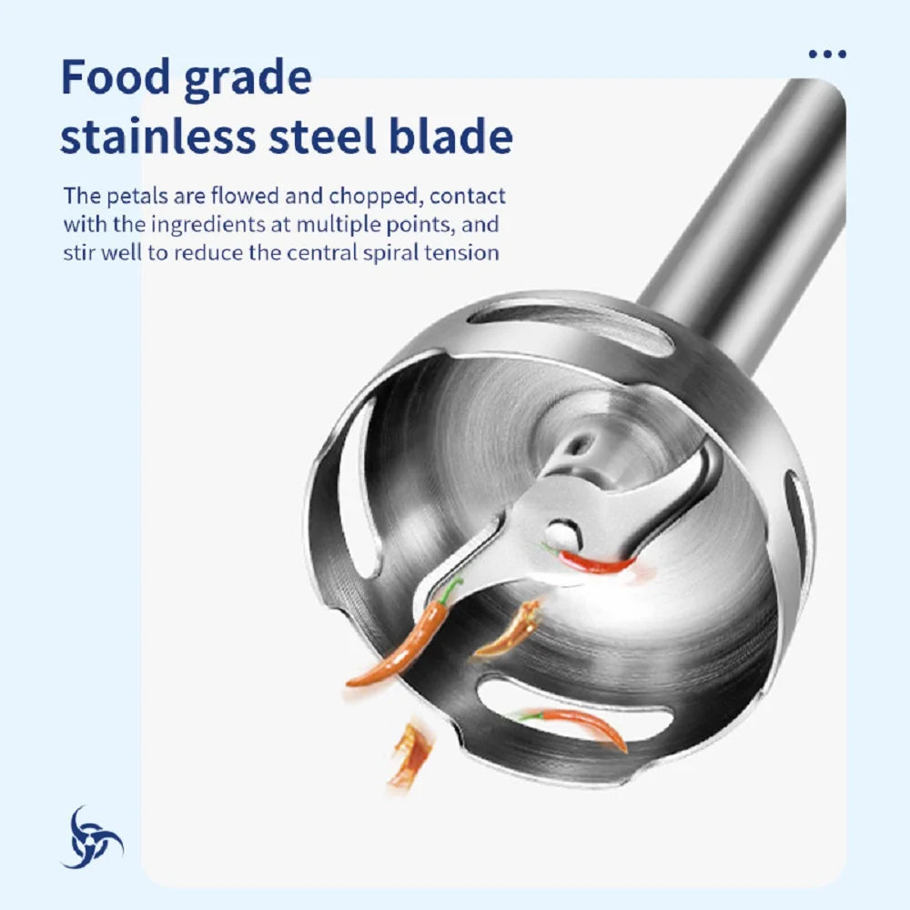 Prepare refeições deliciosas com facilidade usando esta varinha mágica elétrica de 400W. Com 2 velocidades e lâminas em aço inoxidável, é perfeita para triturar, misturar e cortar frutas, vegetais, ovos e muito mais.