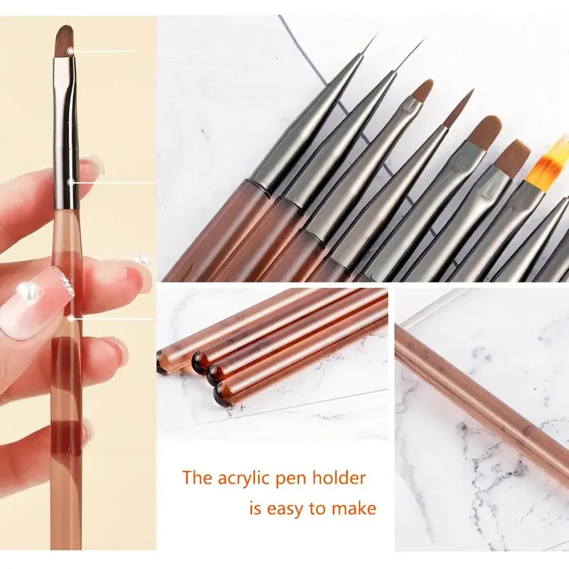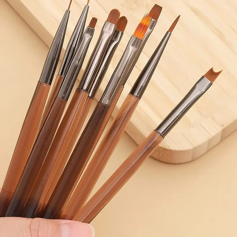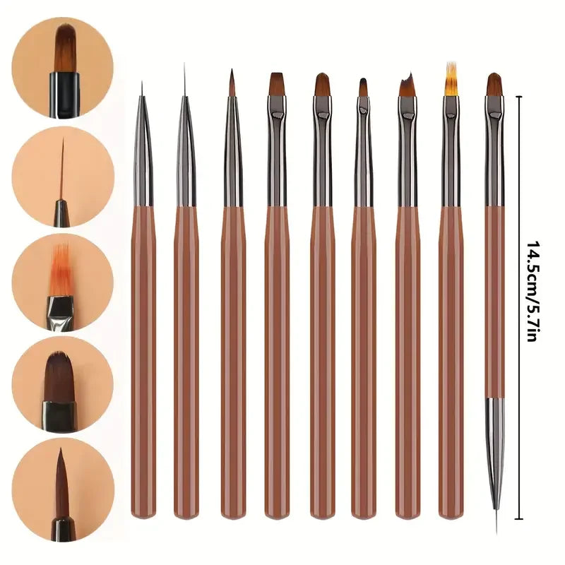Kit 9 Pincéis Profissionais Nail Art - Set Completo para Designs e Detalhes Perfeitos