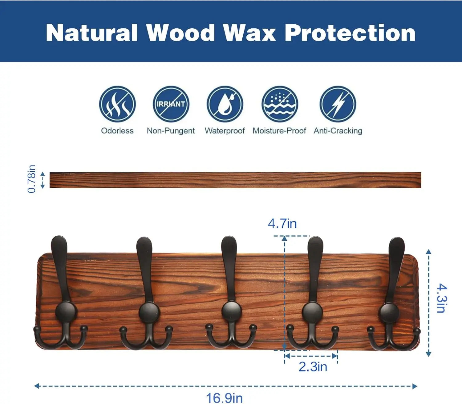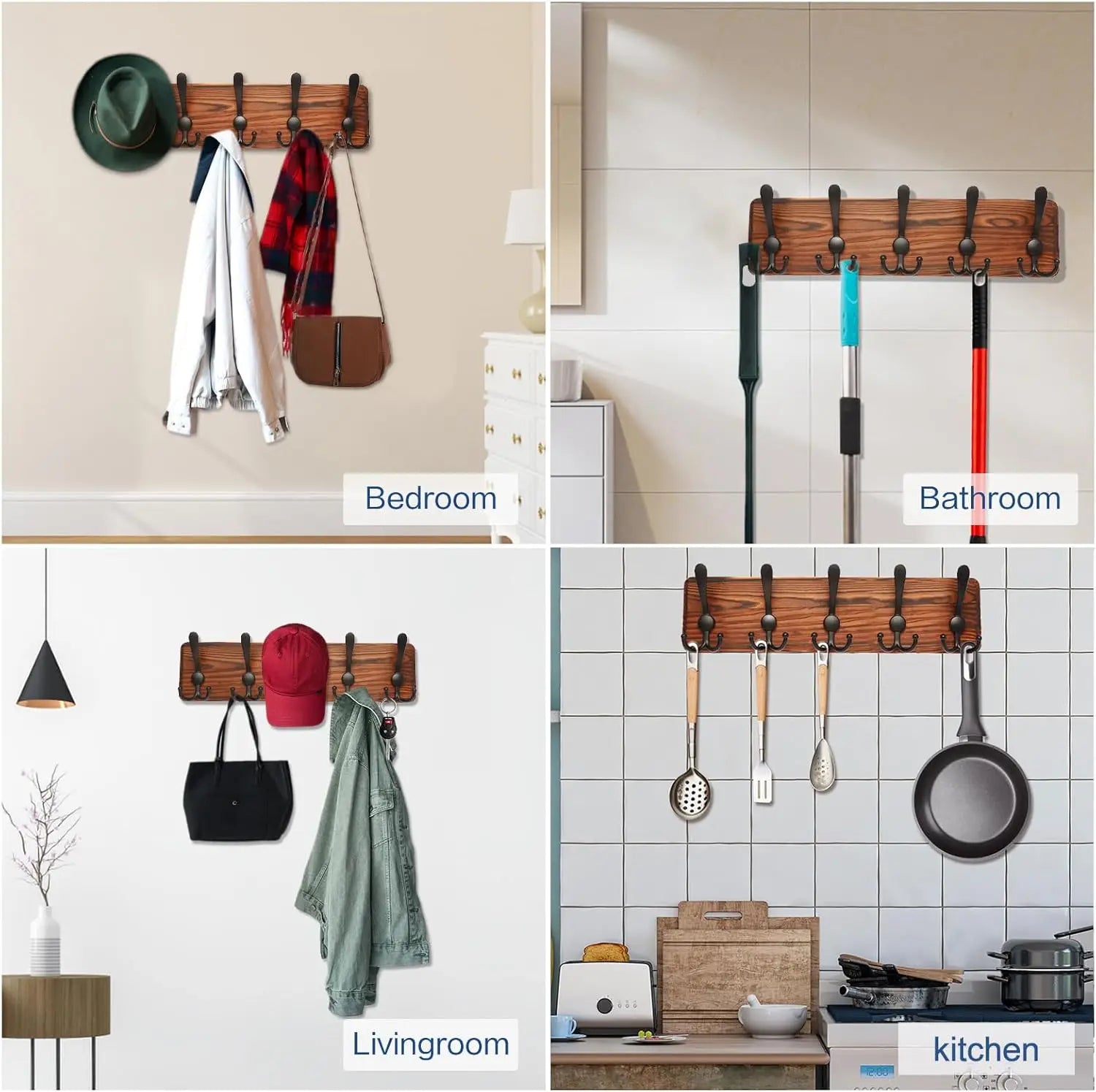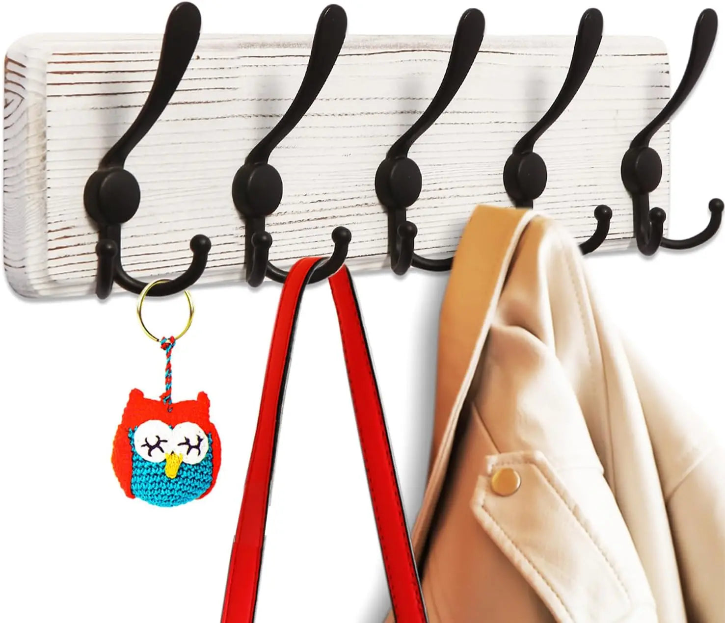 Os 5 ganchos proporcionam espaço suficiente para toda a família, enquanto o design em madeira adiciona calor e elegância natural ao ambiente. Instalação simples que transforma qualquer parede num espaço funcional.