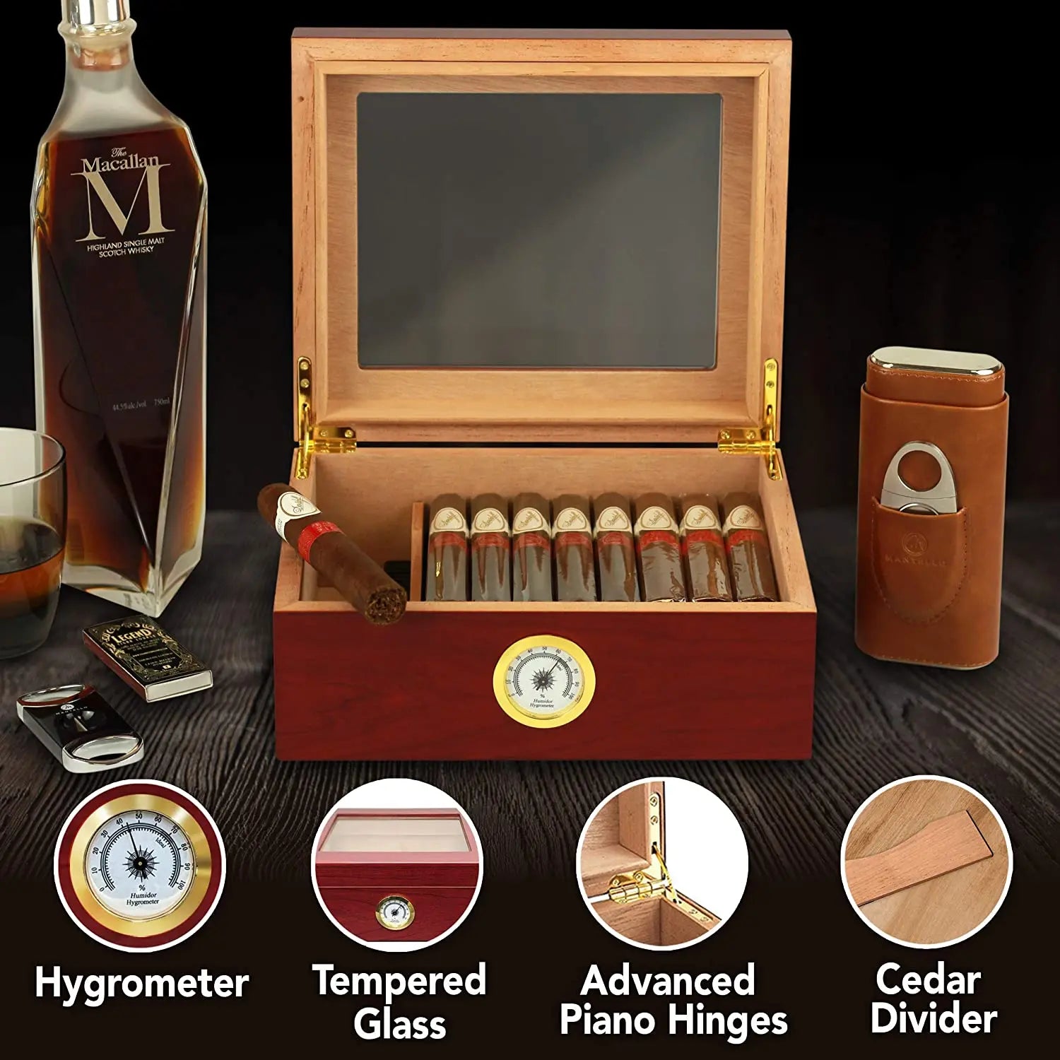 Perfeita para armazenar charutos em condições ideais humidade. Higrômetro garante ambiente perfeito. Presente luxuoso para apreciadores charutos.