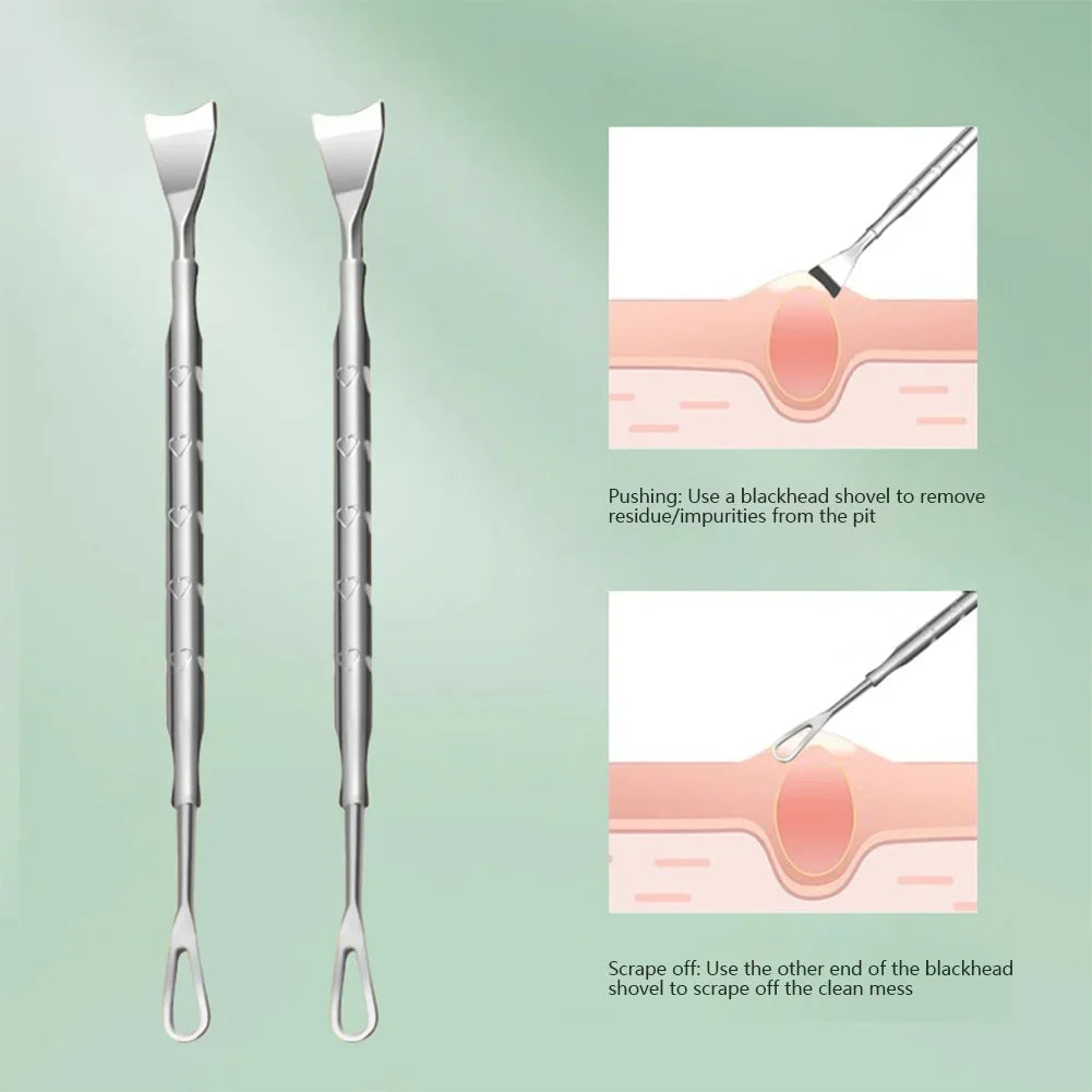 O extrator de cravos profissional em aço inoxidável com dupla cabeça que remove cravos, espinhas e imperfeições com precisão cirúrgica. Ferramenta essencial para uma pele perfeita.