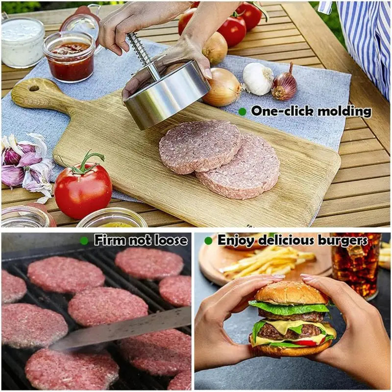 Perfeita para fazer hambúrgueres caseiros, bolinhos de arroz, patties de carne, frango ou vegetais. Ideal para churrascos, festas e refeições família.