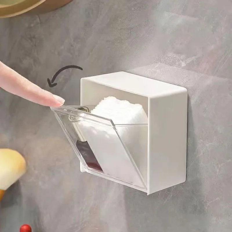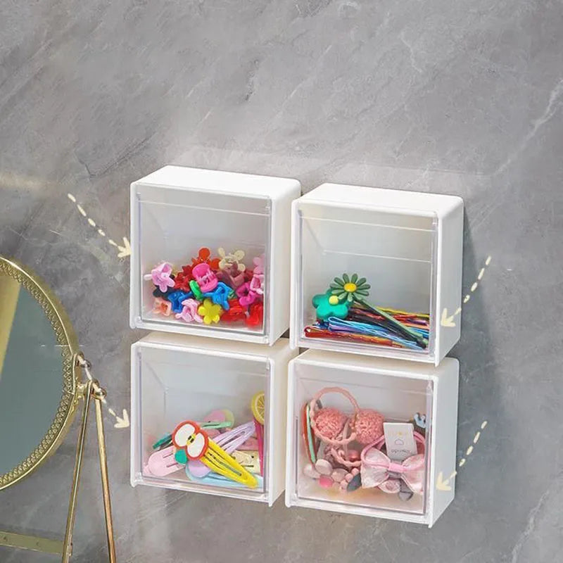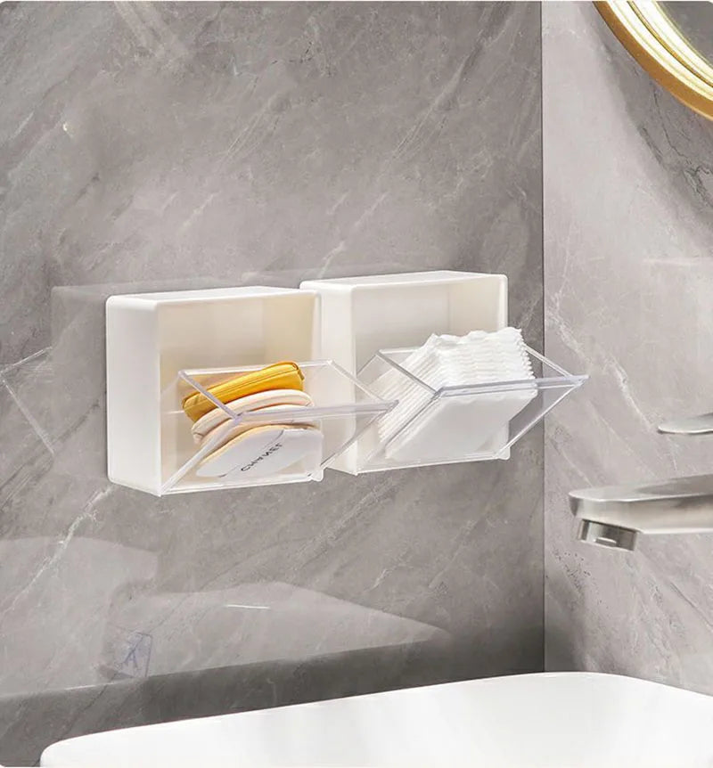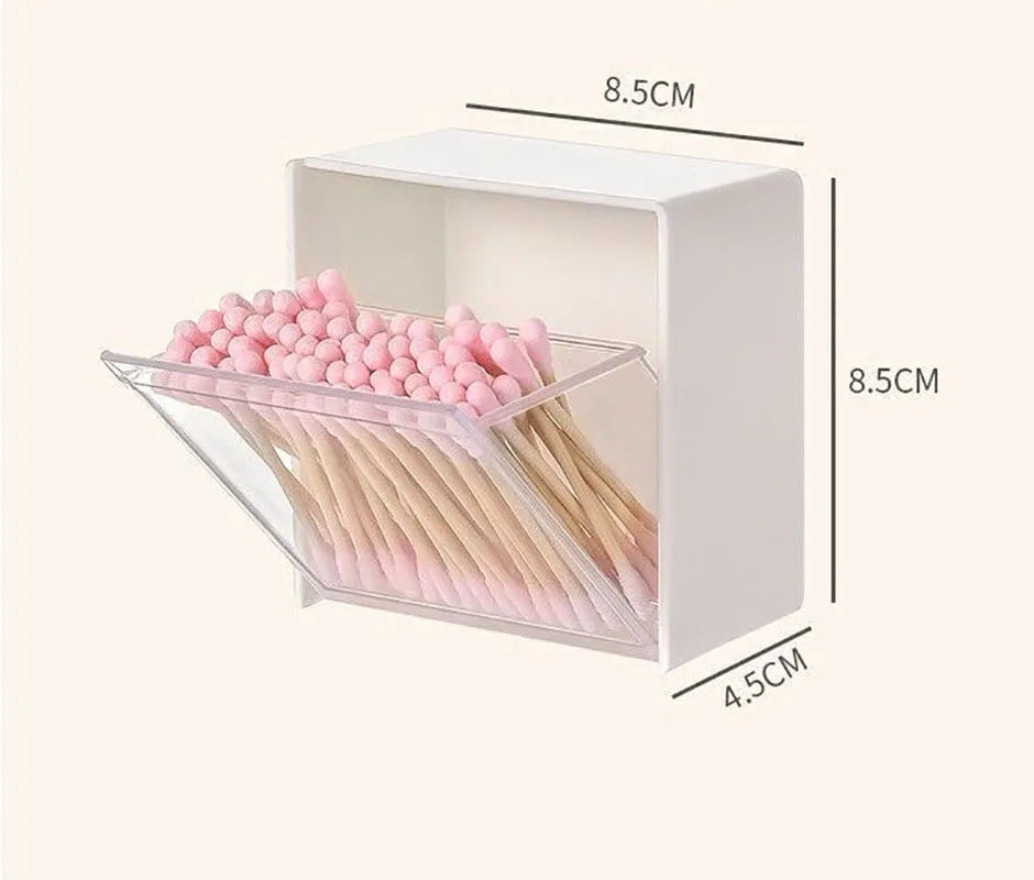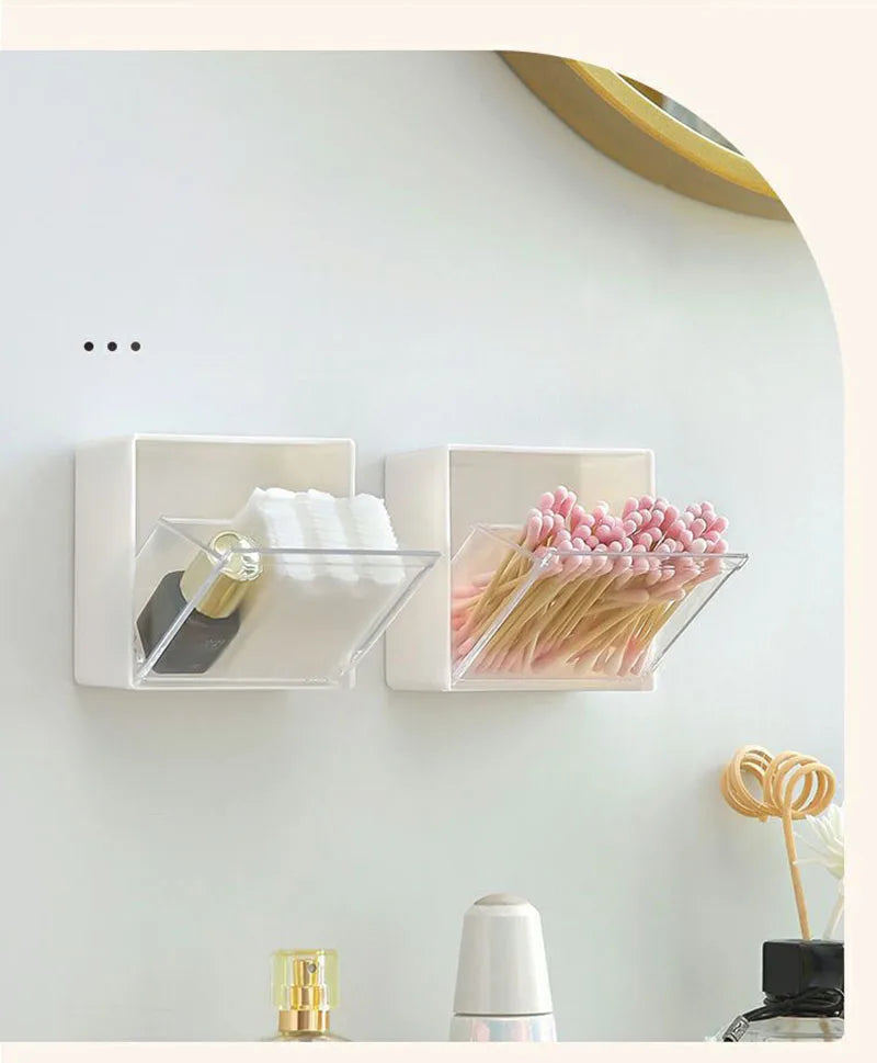 Caixa de Armazenamento de Parede em Plástico – Organizador Adesivo para Cotonetes, Maquilhagem, Acessórios e Joias | Caixa à Prova de Poeira para Casa de Banho