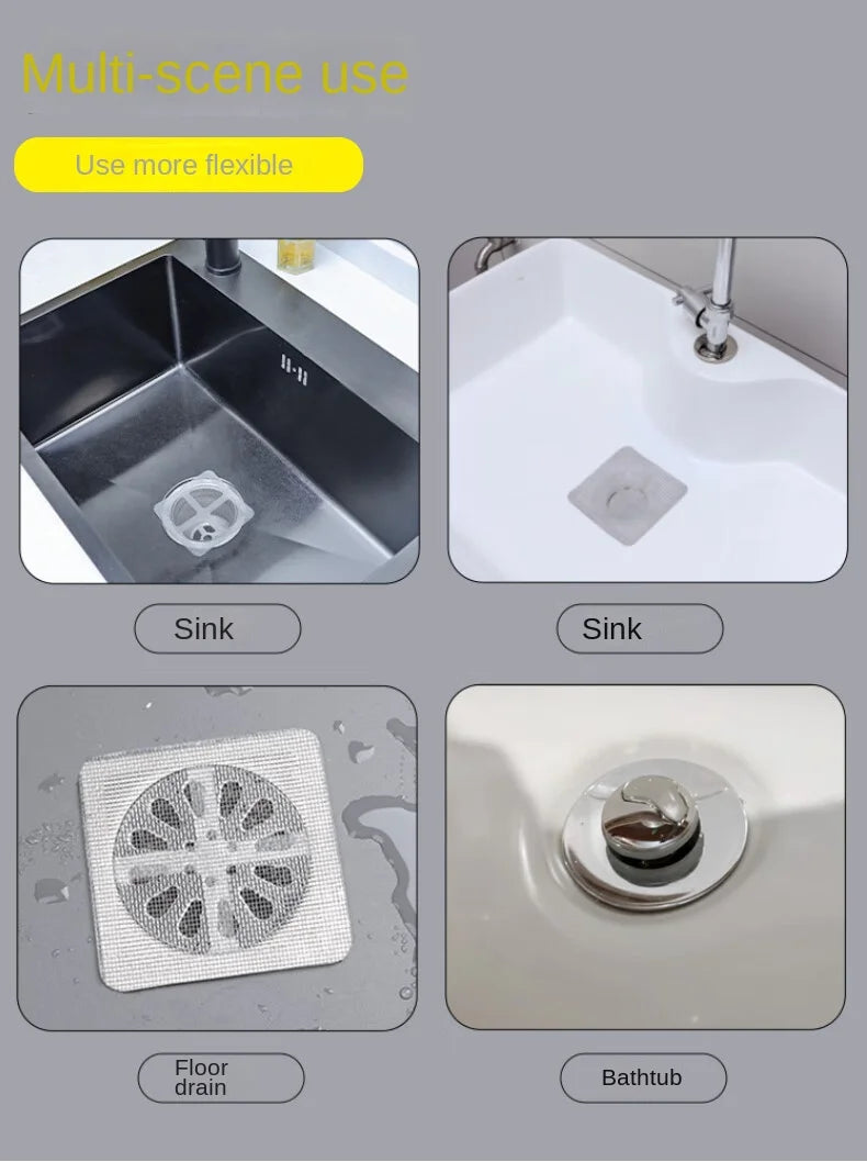 Perfeito para cozinha, banheiro, lavandaria. Captura cabelos, restos comida, resíduos antes entrarem canos. Previne entupimentos e maus cheiros.