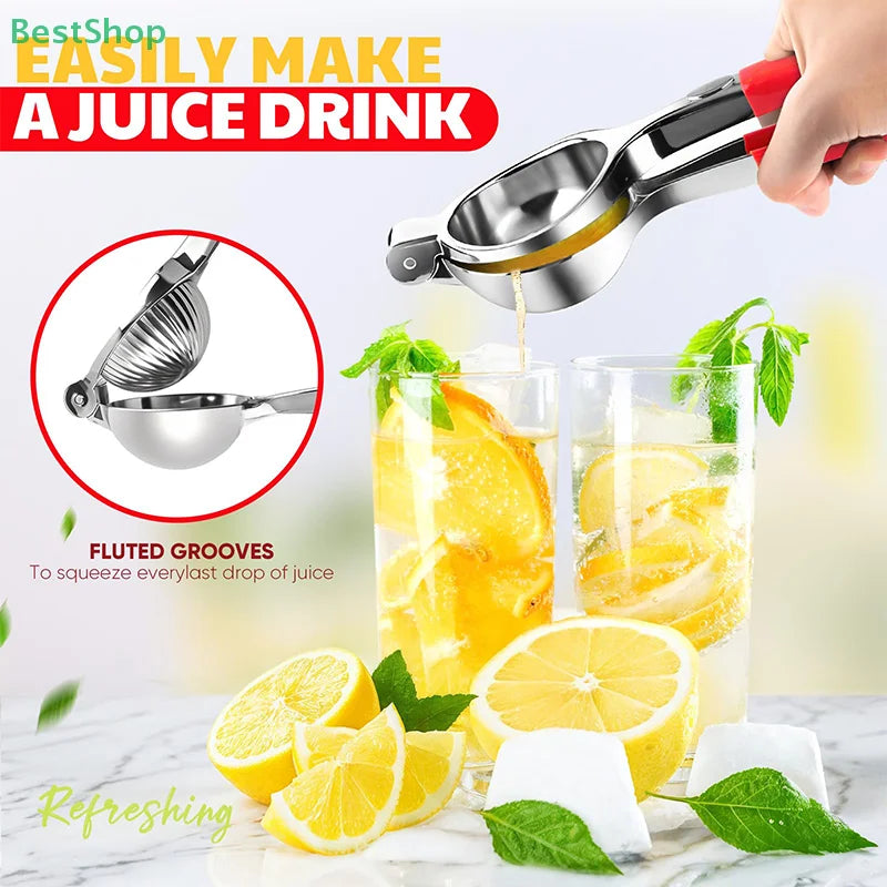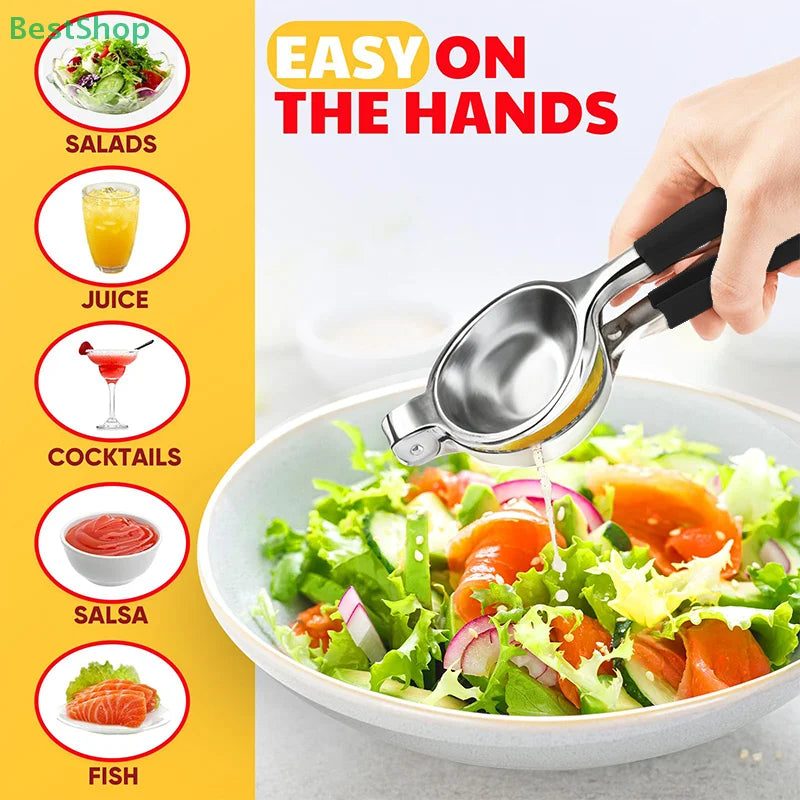 O Espremedor Manual Limão Aço Inoxidável extrai máximo sumo com mínimo esforço. Design ergonómico e material durável tornam preparação de sumos e receitas rápida e eficiente.